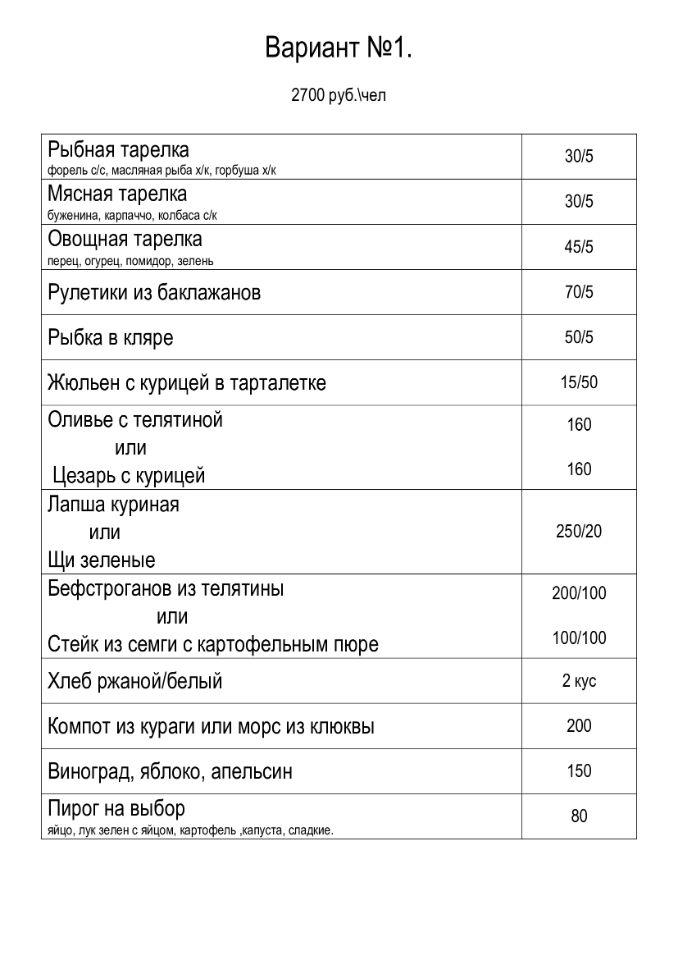 Банкетное меню